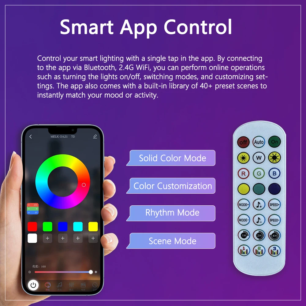 Smart Bluetooth Control: Use the dedicated smartphone APP to control millions of colors, adjust brightness, and switch lighting modes effortlessly.